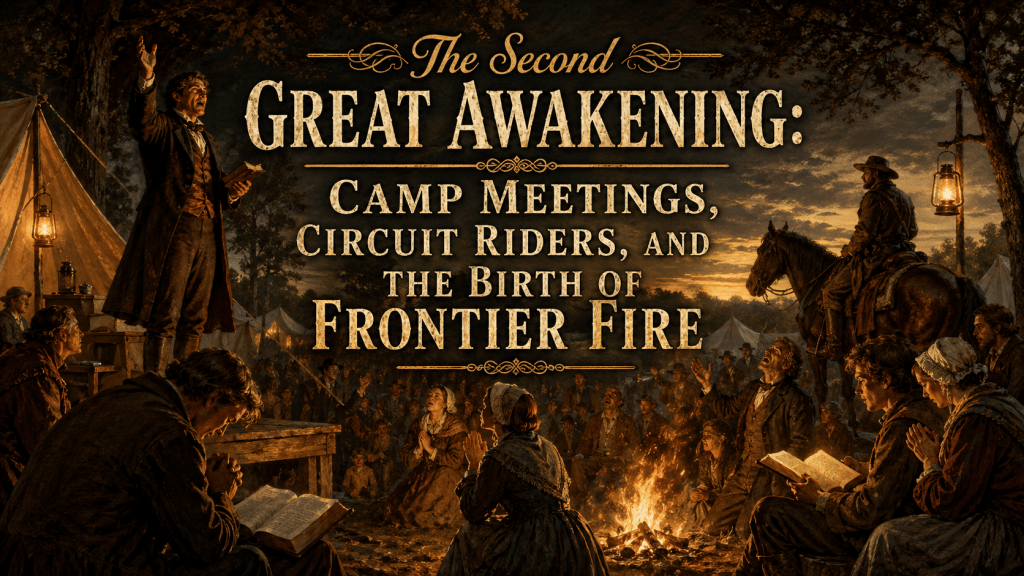 The Second Great Awakening rose in America as a holy answer to a young nation wrestling with expansion, moral drift, frontier disorder, and spiritual hunger. After the First Great Awakening shook the colonies with the fear of the Lord, the second awakening carried revival into the wilderness, the camp meeting, the college, the village, and the public square. It was not merely a season of emotional religion; it became a furnace where conviction, repentance, evangelism, reform, and discipleship were pressed into the conscience of a nation. The cry of Acts 3:19 seemed to thunder again: “Repent ye therefore, and be converted, that your sins may be blotted out.” Revival came not to entertain the people, but to bring them under the searching eye of God until sin was confessed, Christ was exalted, and lives were visibly changed.